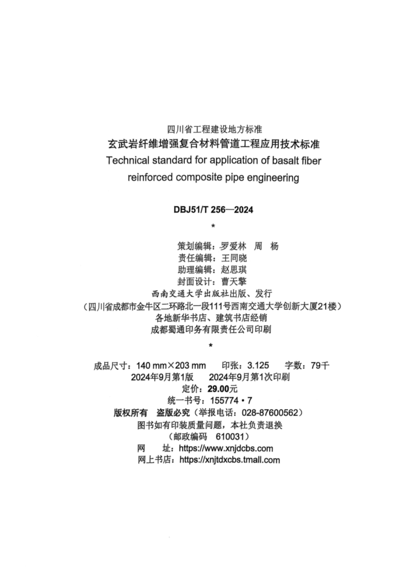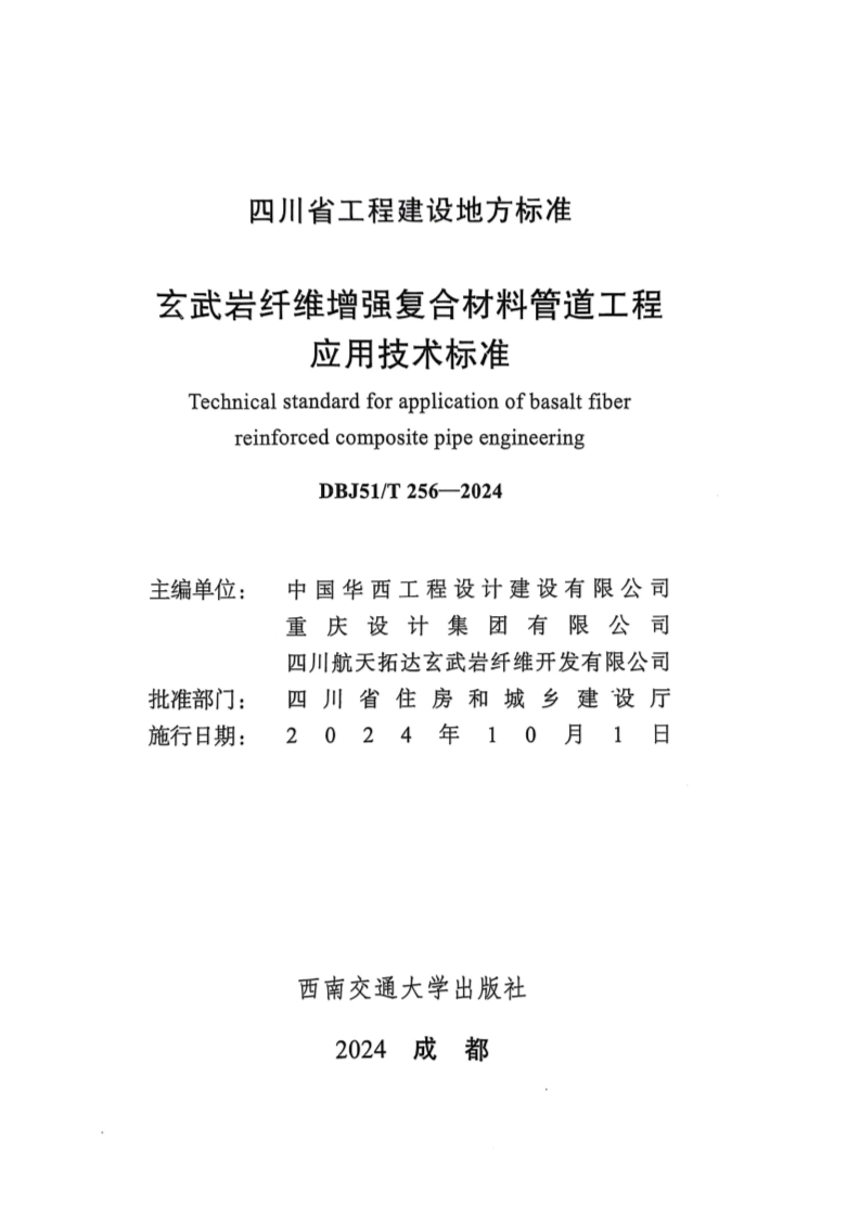 玄武岩纤维增强复合材料管道工程应用技术标准