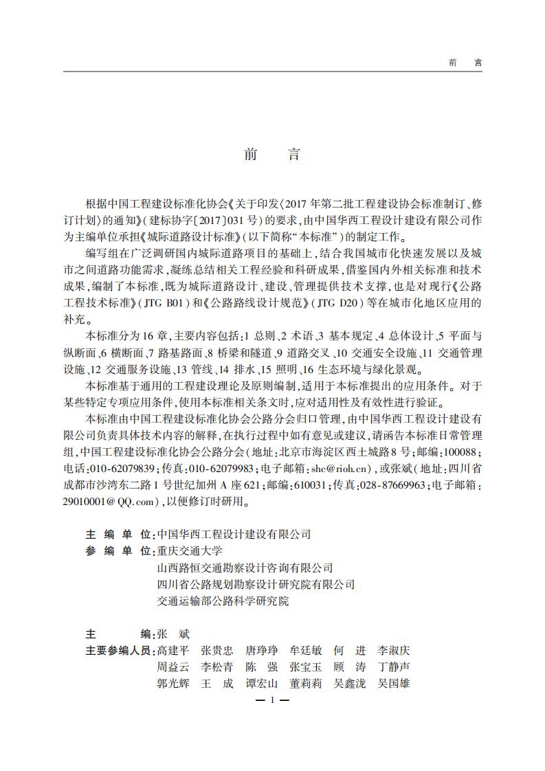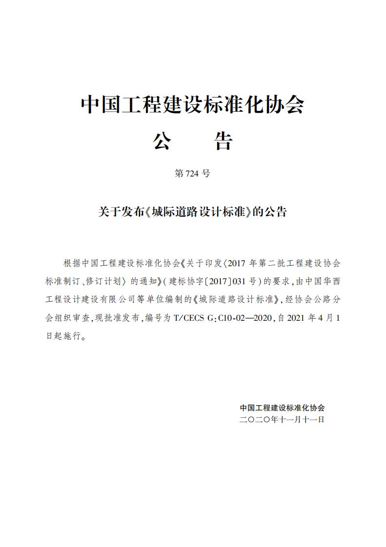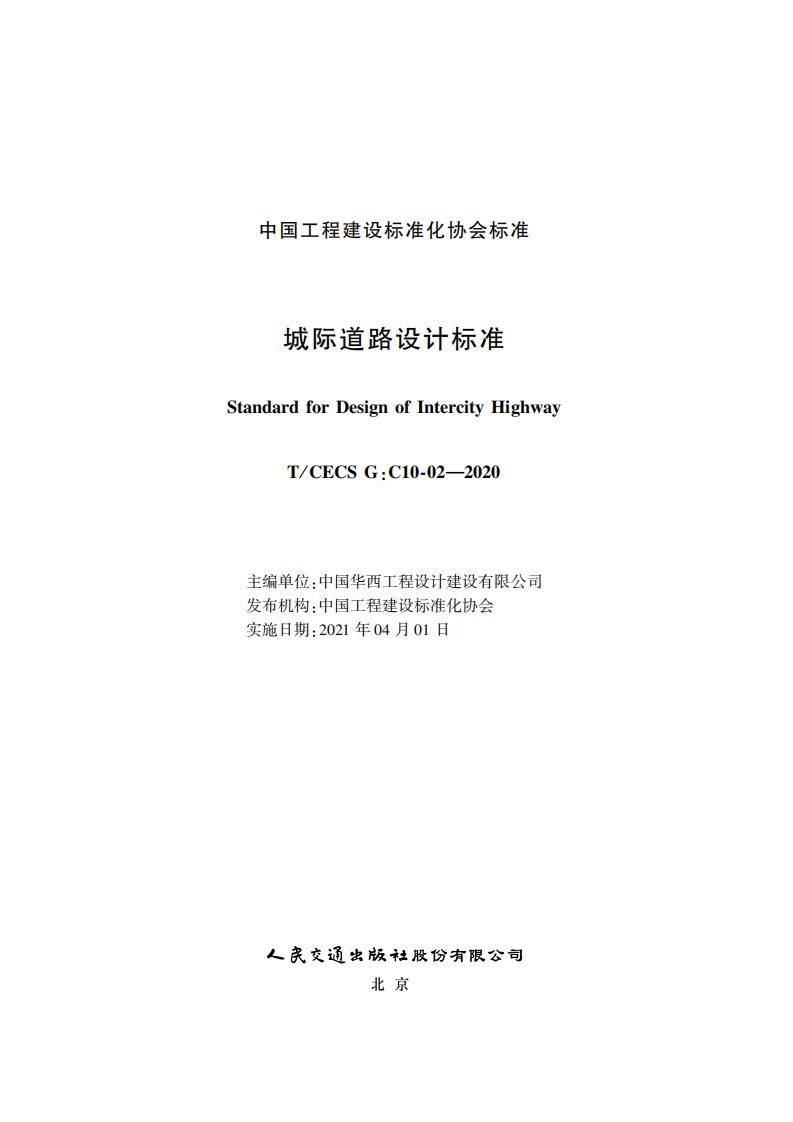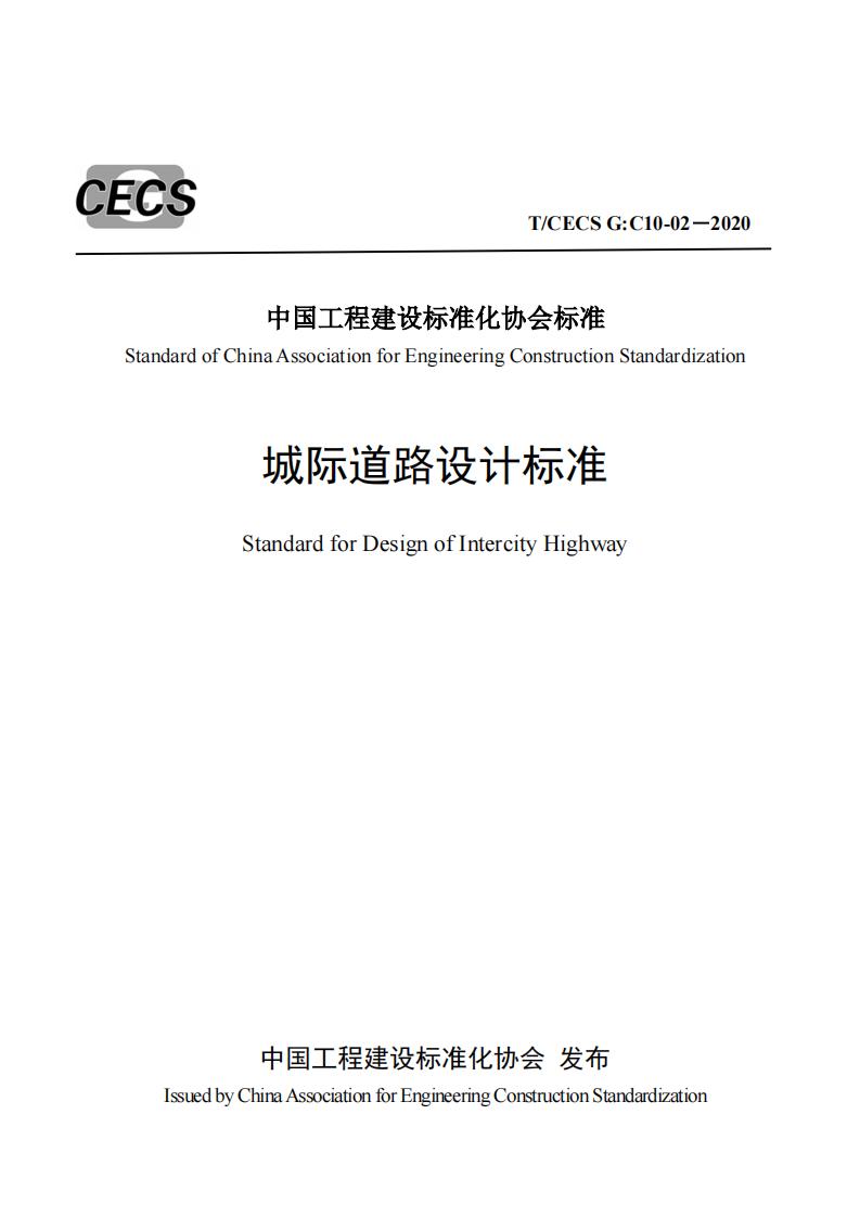 为了能够规范和指导城际道路设计,编写组通过两年多的现场考察、讨论交流、分析研究,顺利完成了《城际道路设计标准》的编制工作,经协会公路分会组织审查批准发布,编号为T/CECS G:C10-02—2020,自2021年4月1日起施行。